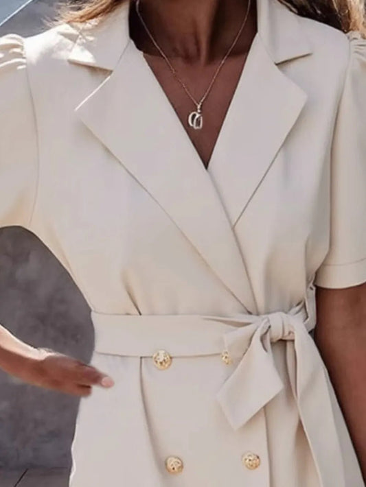 Lapel Collar Short Sleeve Tie Waist Mini Dress