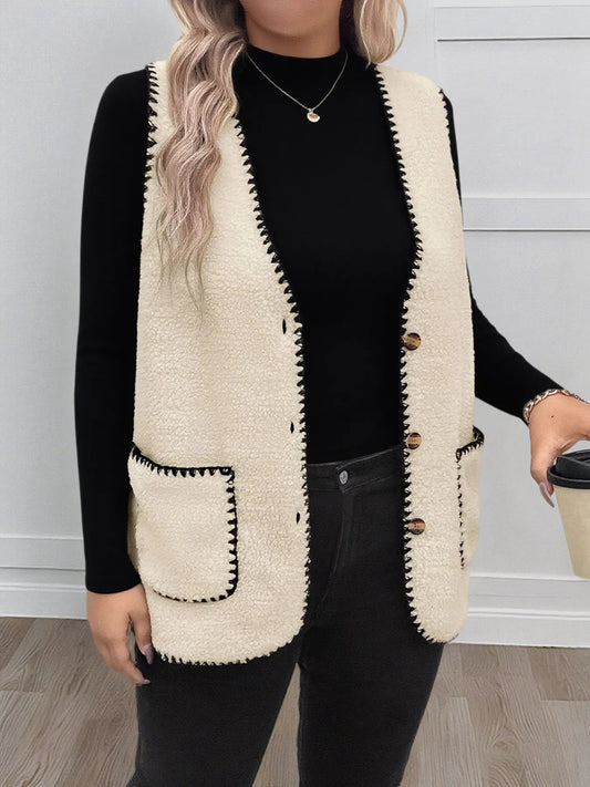 Regular price $47.40 USDRegular priceUnit price / perSale price $47.40 USDPlus Size Contrast Trim Button Up Vest Coat